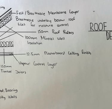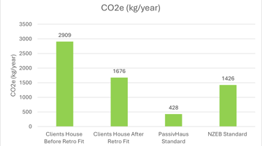 The project involved creating a dynamic energy model of the existing house using DesignBuilder, allowing the current energy performance to be evaluated and compared against low-energy benchmarks. A fabric-first retrofit strategy was then developed, testing improvements to walls, roofs, floors and windows to reduce heat loss and energy demand.