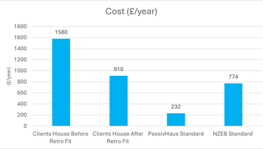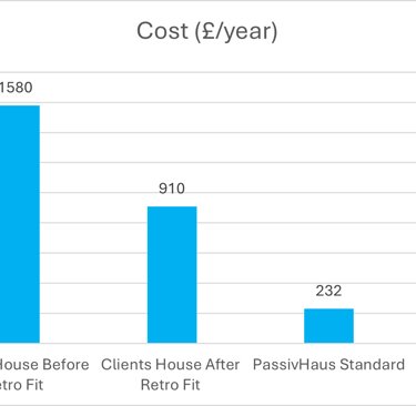 The proposed retrofit reduced heating demand from 102 to 59 kWh/m²·year, cutting annual energy use by approximately 6,700 kWh, CO₂ emissions by around 1.7 tonnes per year, and heating costs by roughly £670 annually. In addition, an overheating risk assessment was carried out using CIBSE TM52, highlighting areas where future climate conditions may require further measures such as improved shading and ventilation.